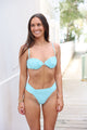 Introducing the Traveler's Bottom in Bahama Blue by Ophelia Love. A hipster bottom with a playful twist that featuring charming ruching on the front to elongate the legs. This bottom offers full to moderate coverage for a comfortable and flattering fit. Pair it with the fun and cutesy Marcela Underwire Top for a delightful beach look that exudes charm and style.