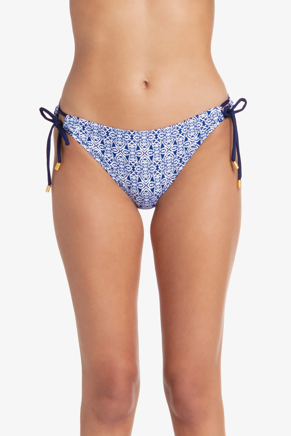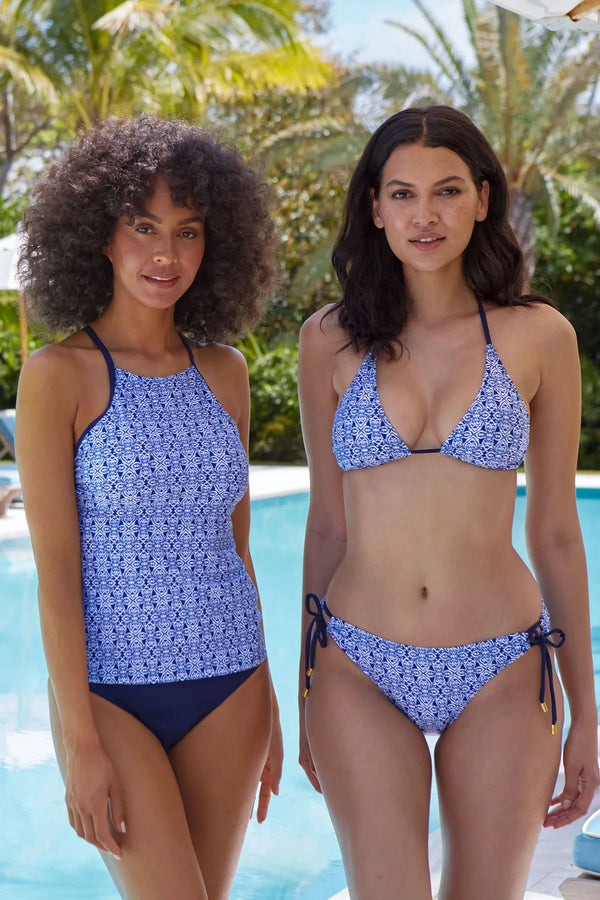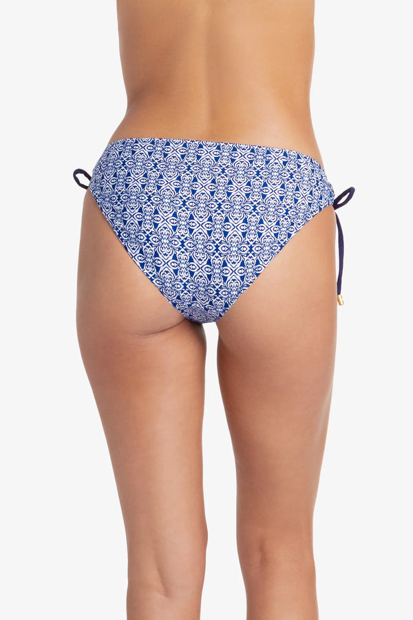 Enjoy playful comfort with the Tunnel Side Hipster in Tangier by Helen Jon. Fully lined for confidence and moderate coverage for a flattering fit, these hipsters feature adjustable tunnel side ties adorned with charming gold end beads. Perfect for mixing and matching your favorite swim looks with a touch of fun and flair.